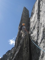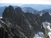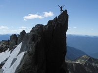 This is a good alpine granite rock ridge with some loose sections. It offers exposed and easy climbing along a sharp ridge crest with a simple descent down the regular north glacier route. Plan on being out for most of the day! Enjoy and be careful.