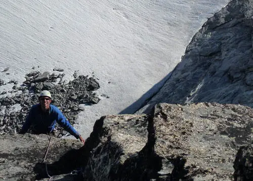 From the top of P7 scramble up in a Westerly direction along the East ridge to the summit, 3rd class, 60m